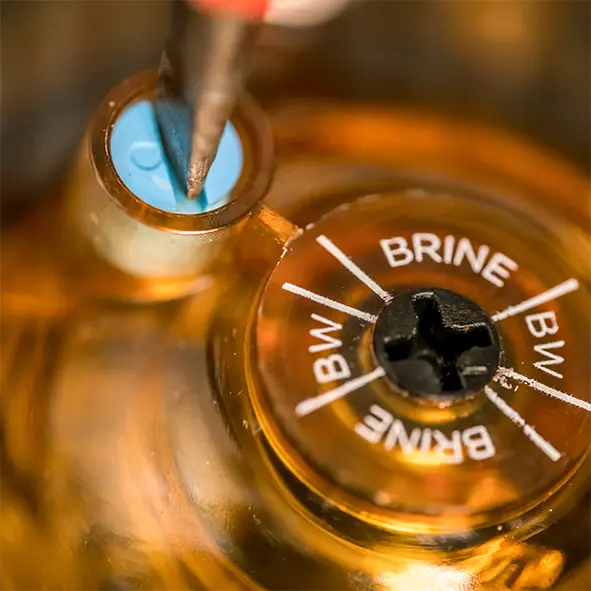 Notre fonctionnement volumétrique s’adapte à votre réelle consommation d’eau. Un compteur placé à l’intérieur de la vanne détermine le moment précis de la régénération et évite ainsi les régénérations inutiles notamment pendant votre absence.