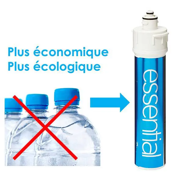 Substituable aux eaux en bouteilles, vous réalisez des économies, réduisez votre empreinte écologique et vous facilitez la vie, car avec l’Essential Filter, fini l’achat coûteux d’eaux en bouteilles, finis les déchets plastiques liés aux eaux en bouteilles, finis le transport et le stockage de packs d’eau…