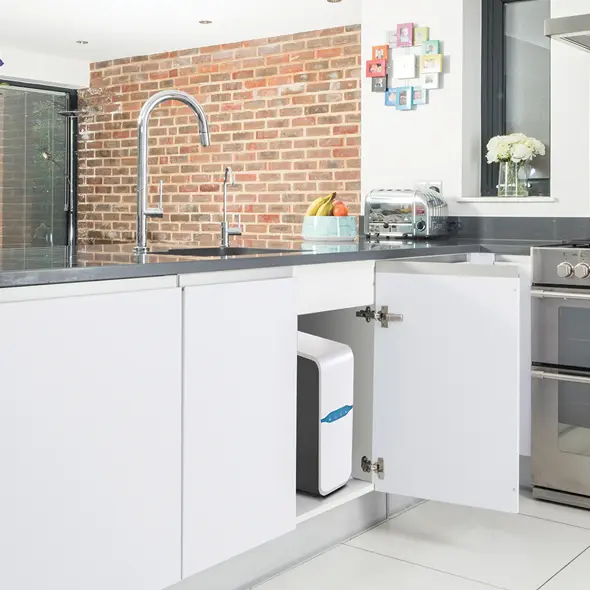 L’osmoseur Premier RO est un système d’osmose inverse dernière technologie alliant à merveille esthétisme contemporain, compacité et performances exceptionnelles. Sa taille ultra-compacte lui permet de trouver sa place quelle que soit la configuration de votre cuisine.