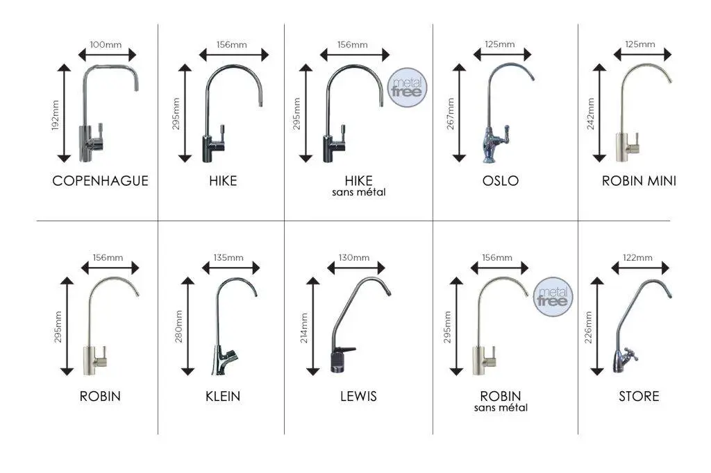Kinetico propose une large gamme de robinets 1 voie, compatibles avec tous ses purificateurs d’eau, qu’il s’agisse de fontaines à eau ou d’osmoseurs.